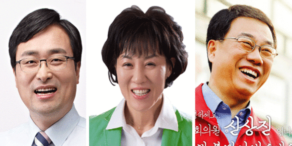 ▲(왼쪽부터) 서울공항 활용에 반대하는 이헌욱, 폐지 주장하는 박윤희, 활용하자는 신상진 예비후보. (사진=오익호 기자)