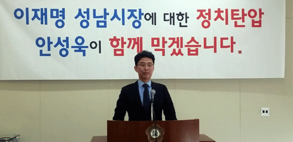 안성욱 예비후보는 3일 기자회견을 자청하고 "'광속민원행정’으로 전국적인 관심사로 떠오른 성남시의 SNS시민소통관제를 사전선거운동으로 트집 잡아 검찰에 수사를 의뢰했다는 것은 지방자치단체의 정상적인 시정 행위마저도 위축시키려는 월권행위"라는 입장을 밝혔다.