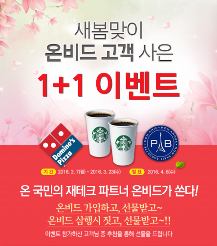 또한, '온비드'로 삼행시를 제출한 회원 중 100명을 추첨해 베이커리 교환권 1만원권을, 우수작으로 선정된 10명에게는 피자 세트를 증정한다.