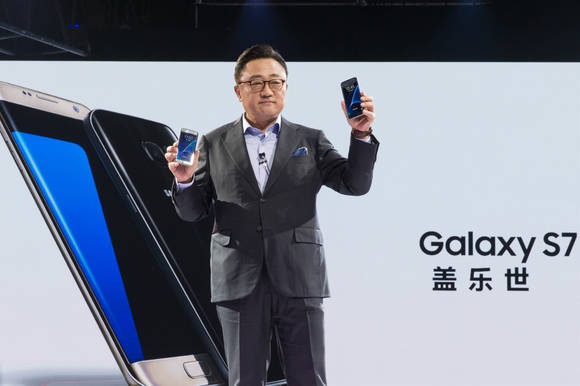 ▲삼성전자 무선사업부 고동진 사장이 갤럭시 S7·S7 엣지를 소개하고 있다. (사진제공=삼성전자)