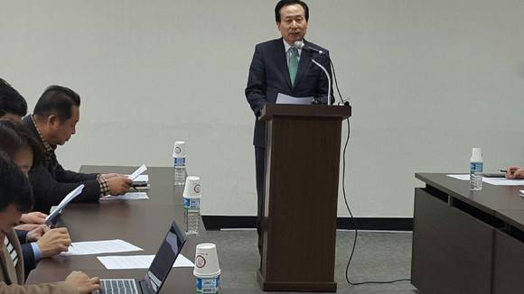 ▲11일 무소속 박홍률 목포시장이 목포시의회 시민의방에서 전국 지자체장으론 최초로 전격 국민의당 입당을 공식 선언하는 기자회견을 하고 있다.