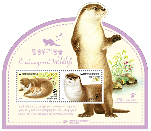 이번 우표의 소재인 수달은 모피를 얻기 위해 그 동안 무분별하게 포획되었고 하천 개발로 인해 서식지가 파괴되어 개체 수가 급격히 줄어들었다. 이에 따라, 1982년에 천연기념물 330호로 지정됐으며, 2012년 부터는 멸종위기 야생동물 1급으로 지정·관리되고 있다.