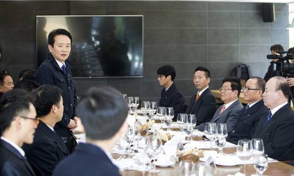 남경필 경기도지사가 15일 2층버스 운전기사 9명, 따복버스 운전기사 4명 등 13명을 굿모닝하우스(구 도지사공관)에 초청해 오찬을 함께하며 격려했다.