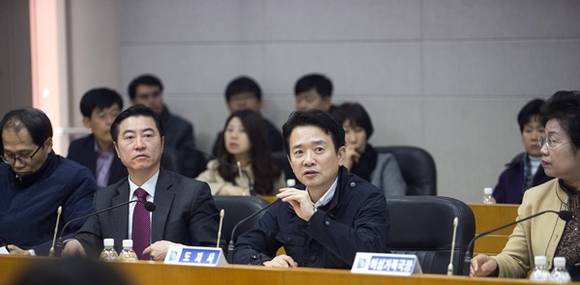 ▲남경필 경기도지사가 학대아동 예방 및 조기발견 시스템 구축 관계기관 회의에서 관련사항을 보고 받고 토의를 주재하고 있다.(사진=경기도)