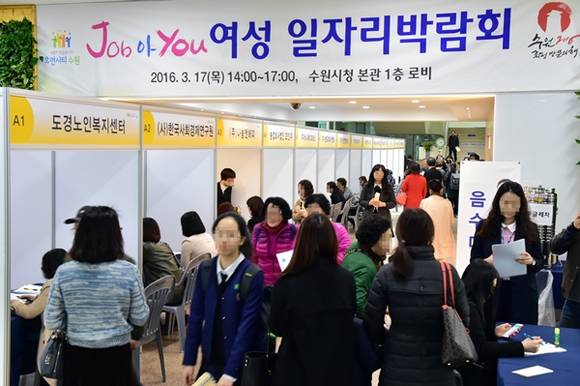 수원시가 17일 오후 수원시청에서 잡(Job) 아 유(You) 여성일자리를 주제로 박람회를 개최해 구직을 원하는 수원시 여성 구직자들로 인산인해를 이뤘다.
