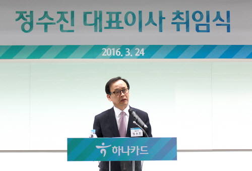 하나카드를 이끌 새로운 수장으로 선임된 정수진 사장은 24일 취임식에서 임직원들의 노력으로 하나카드는 놀랄만한 성장을 이룩했지만 목표를 달성하기 위해서는 여전히 해결해야 할 과제가 있다며 이 같이 밝혔다.