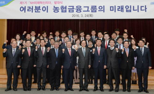 NH농협금융은 24일 김용환 회장 주재로 농협은행 신관 대회의실에서 농협금융의 미래를 이끌어갈 제1기 ‘NH미래혁신리더 발대식’을 개최했다고 밝혔다.