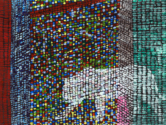 갤러리그림손 측은 "높이 차오른 빌딩의 모습은 작은 톱니인 개별 구성원들이 모인 결과물"이라며 "겉보기에는 같은 창문들의 모습을 하고 있지만 그 속은 다양한 색들로 채워져, 열정인지 욕망인지 모르는 것을 더욱 화려하게 나타낸다"고 밝혔다.
