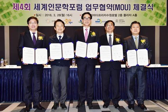 수원시가 28일 제4회 세계인문학포럼의 성공적인 개최를 위해 교육부, 경기도, 유네스코, 한국연구재단과 업무 협약을 체결했다.