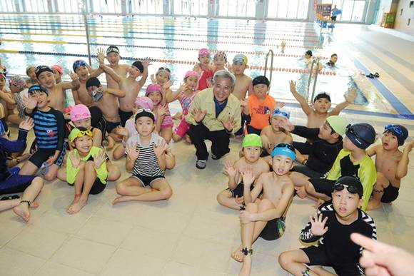 무지개 수영교실에 참석한 곽상욱 오산시장은 "혁신교육을 통해 내년 관내 유치원, 어린이집 7세 아이들에게 전면 확대해 오산시에서 자라나는 아이들은 누구나 수영을 할 수 있게 하겠다"고 말했다.
