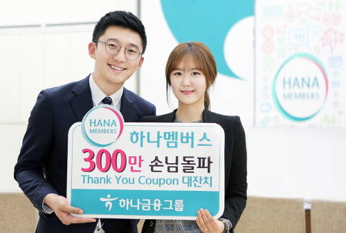 하나금융그룹은 29일 통합 멤버십 서비스인 ‘하나멤버스’가 출시 후 5개월 만에 가입회원 수 300만을 돌파했다며 오는 4월 30일까지 ‘Thank You Coupon 대잔치’를 진행한다고 밝혔다.