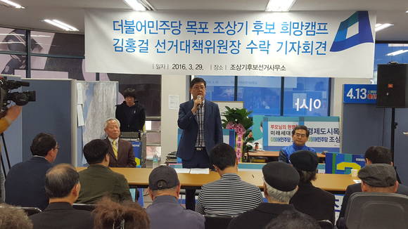 김 위원장은 29일 오후 5시 목포를 방문해 조상기 후보 사무실에서 기자회견을 갖고 “조상기 후보를 반드시 당선시키기 위해 선거대책위원장을 맡기로 했다”고 발표했다.