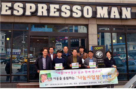 ▲설악산배움터(센터장 이주상) 운영위원회(위원장 최태선)는 지난 30일 북면 원통리 상가의 설악산배움터 후원사업장 32곳에 인증 현판을 전달했다. (사진=인제군청 제공)