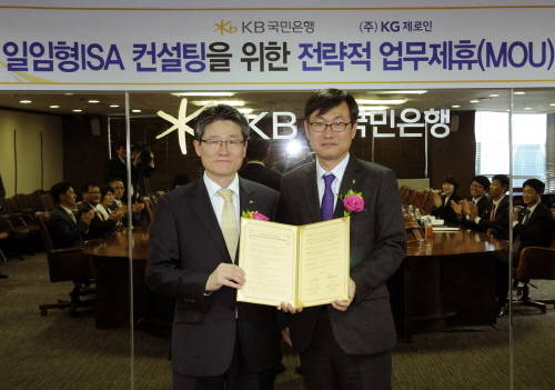 KB국민은행은 4일 KG제로인과 ‘일임형ISA’ 컨설팅 지원을 위한 전략적 업무협약(MOU)을 체결했다고 밝혔다.