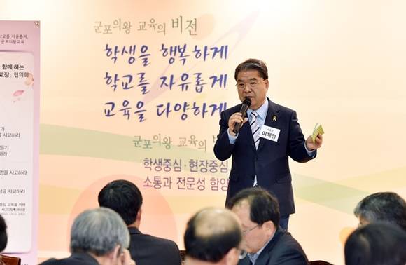 이재정 경기도교육감은 4일 군포의왕교육지원청 대회의실에서 열린 학교장과 함께하는 현장교육협의회에 참석해 군포의왕 지역 학교장과 소통하고 대화하는 시간을 가졌다.
