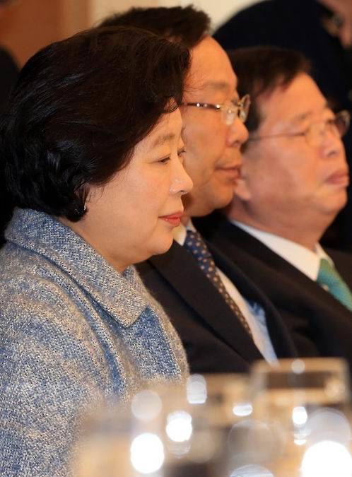 ▲현대증권 매각 성사로 유동성 위기에 처한 현대그룹이 안도의 한숨을 쉬게 됐다. 현정은 현대그룹 회장이 지난달 10일 대한상공회의소에서 열린 전국상의 회장단 정책간담회에서 생각에 잠겨 있다. (사진=연합뉴스)