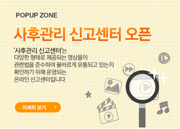 영상물등급위원회(위원장 이경숙)는 영상물 등급분류 위반사항에 대한 감시활동을 강화하고 등급분류에 대한 국민적 관심과 이해를 높이기 위해 '영상물 사후관리 신고센터'를 지난 4일부터 운영중이라고 밝혔다.