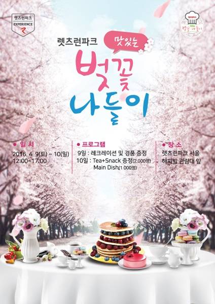 지난해 선보인 형형색색의 경관조명을 이용해 올해도 아름답고 예술적인 야간 벚꽃물결을 고객들에게 선물할 예정이다. 특히 오는 10일 인기방송프로그램 '냉장고를 부탁해'에서 맹활약 중인 미카엘 쉐프가 벚꽃에 어울리는 특별한 봄 요리를 10일 12시 25분부터 렛츠런파크 서울 관람대 앞에서 제공한다.