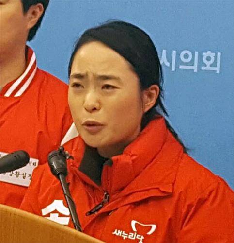부산 사상구 새누리당 손수조 후보가 7일 부산시의회에서 열린 기자회견에서 울먹이며 지지를 호소하고 있다.