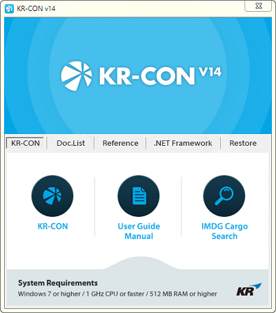 KR-CON 14차 버전의 가장 큰 특징은 국제해상위험물규칙(IMDG Code) 에 따른 화물검색 프로그램을 자체개발, 추가로 적용한 것이다. 이를 통해 위험화물의 복잡한 상세 운송요건을 사용자가 한 눈에 쉽고 빠르게 파악할 수 있게 되었다.