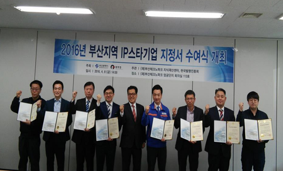 부산시와 부산테크노파크 부산지식재산센터는 올해 성장 잠재력이 높은 지역 유망 중소·벤처기업을 대상으로 글로벌 IP스타기업을 공모한 결과, 최종 선정된 8개사에 대해 8일 오후 2시 부산테크노파크 엄궁지사에서 부산시장 명의의 IP스타기업 지정서를 수여했다고 밝혔다.