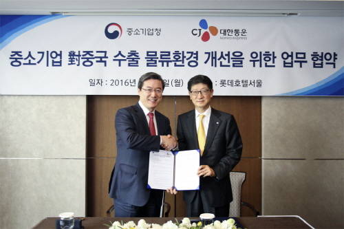 CJ대한통운은 11일 서울시 소공동 롯데호텔에서 중소기업청과 ‘중소기업 대중국 수출 물류환경 개선을 위한 업무협약’을 체결했다고 11일 밝혔다.