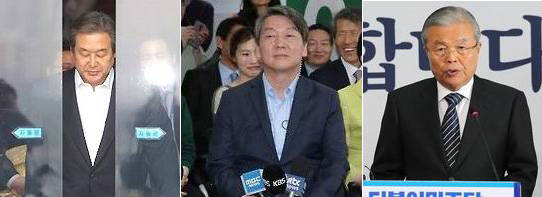 ▲이번 총선을 계기로 여야 할 것 없이 새로운 세력들을 중심으로 정계개편이 속도를 낼 것으로 전망된다. (왼쪽부터) 총선 직후 침통한 표정으로 당사를 떠나고 있는 김무성 새누리당 대표, 개표방송을 지켜보고 있는 안철수 국민의당 공동대표, 총선 결과에 관해 기자회견을 열고 있는 김종인 더불어민주당 대표. (사진=연합뉴스)