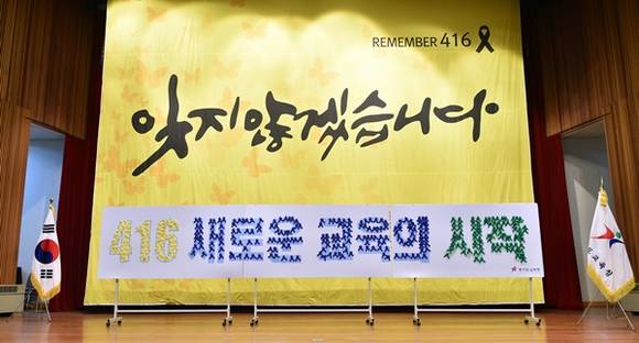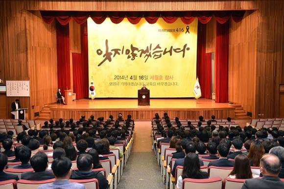 경기도교육청은 15일 세월호 참사 2주기 추모식을 개최해 세월호 사고로 안타깝게 숨진 희생자들을 애도하고 추모했다.