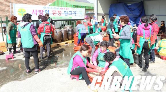 ▲인제군 새마을회(회장 채용석)는 14~15일 인제체육관 식당과 새마을회관에서 관내 다문화가정의 주부들이 함께 참여해 된장과 고추장을 직접 담그는 사랑의 된장, 고추장 담그기 행사를 갖고 이 행사를 통해 담근 고추장 1000kg을 인제지역의 독거노인과 소년소녀 가장 200가구에 전달된다. 또 된장 1000kg은 숙성 작업을 거쳐 연말에 담글 김장 김치와 함께 전달할 예정이다.