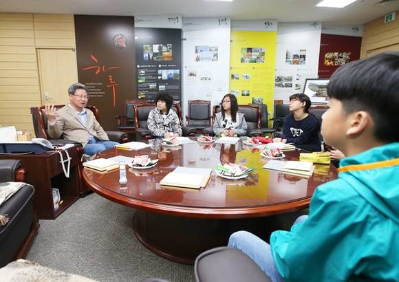 학생들은 국장단 회의 참관을 마친 후 접견실에서 채인석 시장과의 면담과 시민의 민의를 대변하는 화성시의회, 시청 내 공직자들이 일하는 사무실을 돌아보는 체험활동을 가졌다.