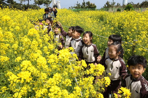 매년 4~5월 포항 호미곶에 만개하는 유채꽃은 나들이 나온 어린이들의 동심을 자극하며 즐거운 시간을 보내고 있다.