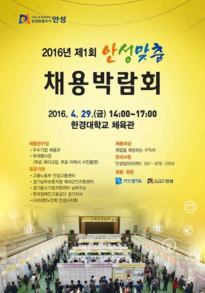안성시는 오는 29일 오후 2시부터 시민을 위한 제1회 안성맞춤 채용박람회를 한경대학교 체육관에서 개최한다.