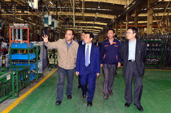 ▲윤장현 시장이 구룡자동차 공장을 방문해 시설을 둘러보고 있다.(사진=광주시)