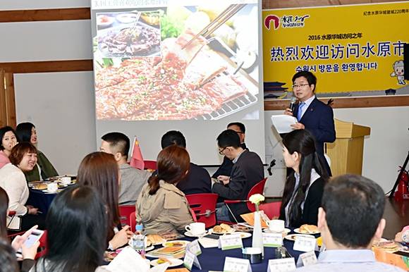 이날 염 시장은 "수원은 글로벌 기업 삼성과 세계문화유산인 수원 화성이 도심에 있어 전통과 현대가 조화된 아름다운 도시"라며 한류드라마 촬영배경 도시, 치맥문화를 경험할 수 있는 통닭거리 등 수원의 볼거리, 먹거리 등을 소개하며 "중국인들이 좋아할만한 관광 엑기스를 품고 있는 수원을 중국 관광객들에게 널리 알려줄 것"을 당부했다.