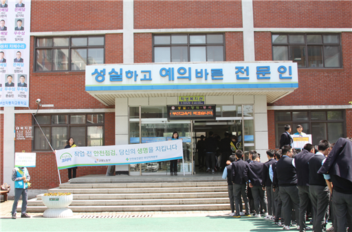 안전보건공단 부산지역본부(본부장 심재동)는 22일 부산자동차고등학교에서 자동차정비·부품가공·생산자동화과정 실습공정 및 급식실 시범안전점검과 예비근로자인 학생들의 안전의식 고취를 위한 캠페인을 실시했다.