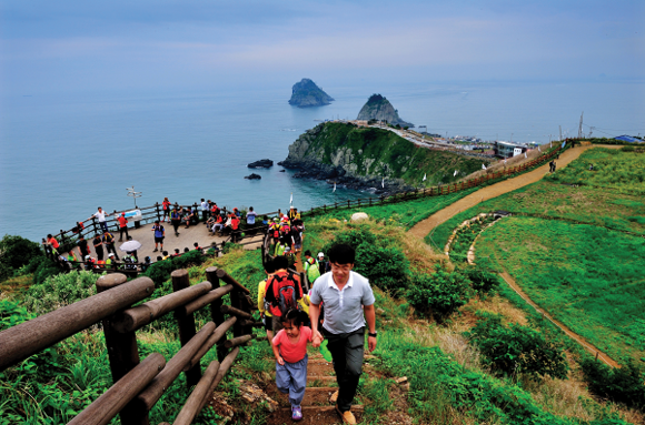 ▲부산 오륙도를 찾은 관광객들이 트레킹을 하는 모습. (사진제공=부산관광공사)