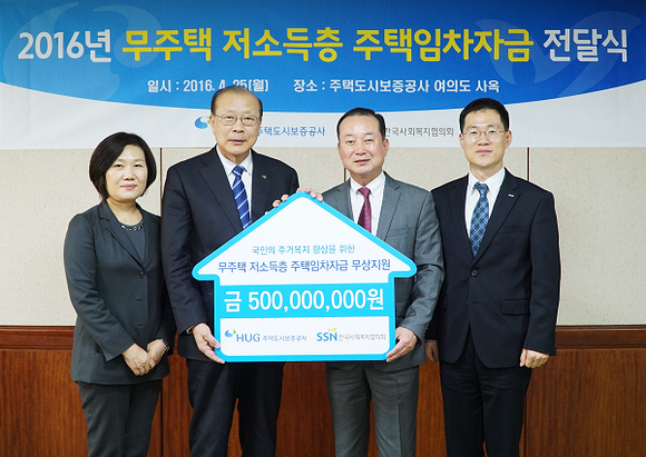 HUG, 무주택 저소득층 주택임차자금 5억원 후원