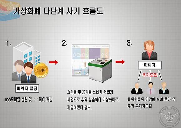 경찰은 일상생활에서 편리하게 사용할 수 있다는 가상화폐를 생성해 고수익을 홍보하면서 투자를 유치하는 투자사기 범행이 성행하고 있어 각별한 주의를 당부하는 한편 더욱 진화되고 있는 다양한 핀테크 사업을 이용한 범죄뿐만 아니라 가상화폐 투자사기 범죄 등에 대해 수사를 확대 할 방침이다.