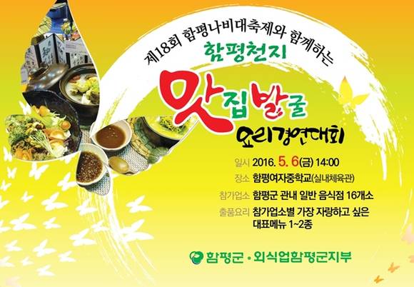 전남 함평군(군수 안병호)은 나비축제가 한창인 6일 ‘함평천지 맛집 발굴 요리경연대회’를 개최한다고 밝혔다.