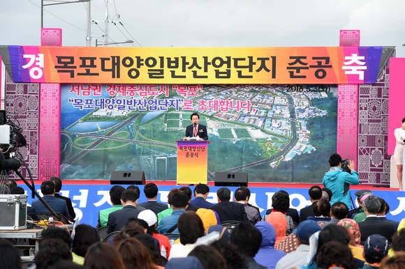 목포시는 조선산업 위주의 단순산업구조에서 미래 신성장 동력 산업 육성을 통한 산업구조 다변화로 지역경제 기반을 내실있게 다지기 위해 대양동 일원 155만㎡부지에 사업비 2,909억원을 투자해 대양산단을 조성했다.