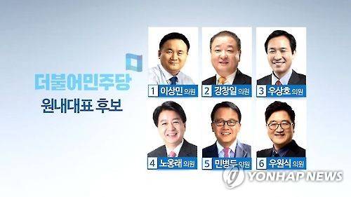 경선은 4선(20대 국회 기준)의 강창일, 이상민 의원(가나다순)과 3선인 노웅래, 민병두, 우상호, 우원식 의원 등이 출마해 6파전으로 치러진다. 전체 당선인의 절반에 육박하는 초선 당선인 57명의 표심이 어디로 쏠릴지 예측하기 힘들어 판세는 여전히 안개속이다.