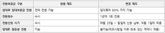 하지만 SH는 이번에 월세의 전세 전환을 기본 월세의 60%까지만 가능하도록 제도를 변경했다. 이리되면 김씨의 경우 10만원의 월세 중 6만원(60%)까지만 전세전환이 가능하며, 나머지 4만원은 월세로 납부해야 한다. 여유자금이 있더라도 계속 일정부분의 월세를 내야한단 얘기다.