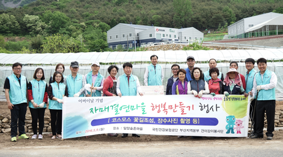 국민건강보험공단 부산지역본부(본부장 전종갑)는 9일 가정의 달을 맞아 1사1촌 자매결연 마을인 밀양 숲촌마을을 방문해 행복 만들기 봉사활동을 펼쳤다.