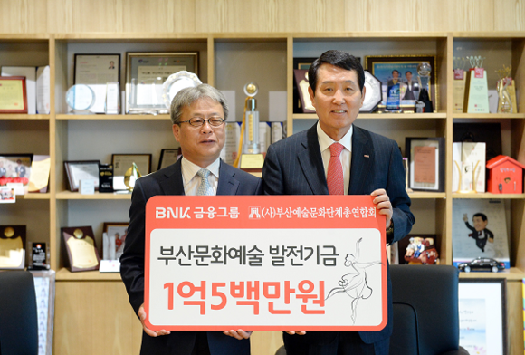 BNK금융그룹(회장 성세환)이 (사)부산예술문화단체총연합회(회장 김동석)에 '문화예술 발전기금' 1억500만 원을 연간 후원한다.