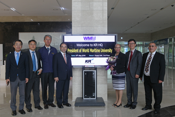 한국선급(KR, 회장 박범식)은 지난 9일 세계해사대학(WMU)의 총장인 클레오파트라 둠비아-헨리(Dr. Cleopatra Doumbia-Henry) 일행이 부산 본부를 방문했다고 11일 밝혔다.