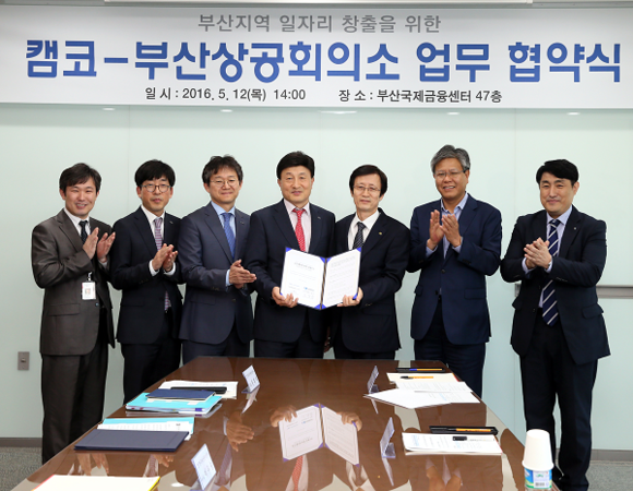 한국자산관리공사(캠코, 사장 홍영만)와 부산상공회의소(회장 조성제)는 12일 오후 2시 부산국제금융센터 47층에서 부산지역 금융취약계층 일자리 지원을 위한 업무협약을 체결했다.