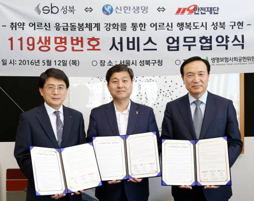 신한생명은 지난 12일 서울 성북구청에서 성북구·119안전재단과 ‘119생명번호 서비스’ 보급사업 후원을 위한 업무협약을 맺었다고 13일 밝혔다.