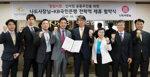 KB국민은행은 지난 12일 서울 여의도 세우회 빌딩에서 창업포털앱을 운영하고 있는 ‘나도사장님’과 창업시장 관련 신사업 추진을 위한 업무협약을 체결했다고 13일 밝혔다.
