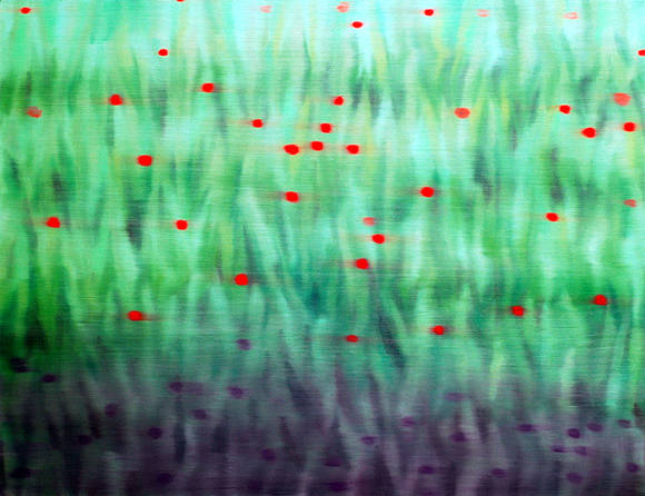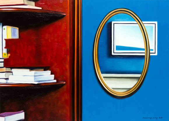 송은영의 실내 풍경은 지극히 사실적으로 표현된 것 같다. 하지만 가만히 들여다 보면 형태의 윤곽선을 침범하는 방법으로 전통적인 원근법에 왜곡과 변형을 가한다. 전경에 가려진 후경의 공간이 원근법을 이탈해 앞 사물의 영역을 침범한다.