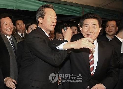 새누리당 정진석 원내대표가 입장할 때는 일부 참가자들이 박수를 치며 환영하는 모습도 보였다.
